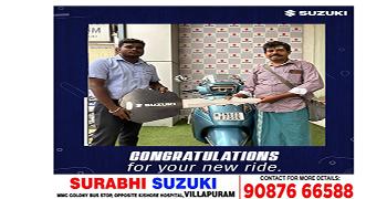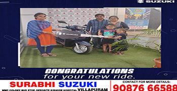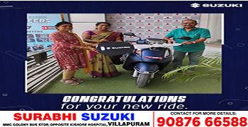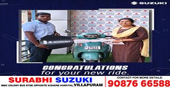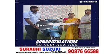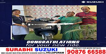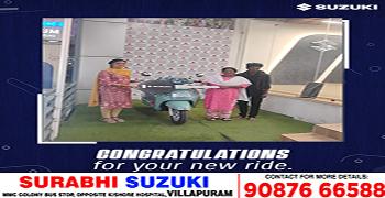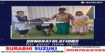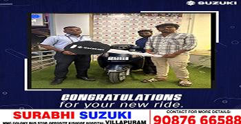 Established in 2025, SURABHI SUZUKI, Villapuram is one of the most well-known and trusted Suzuki Bike Showroom in Madurai, Villapuram. SURABHI SUZUKI is an authorised Suzuki Motorcycle Dealer with a state-of-the-art showroom where you can check out the new Avenis,take it out for a test ride, and book your dream ride. On our website, you can explore the entire range of two-wheelers by Suzuki Motorcycles. You can also find out the ex-showroom price of different variants, calculate EMI, get a callback, and even book a suitable time slot for a test ride. Check out your favourite Suzuki motorcycles and scooters conveniently, with the easy-to-use filters to simplify your search. SURABHI SUZUKI offers the entire range of Suzuki Motorcycles, Big Bikes, and Scooters in the Avenis from SURABHI SUZUKI,check out its features, take it for a ride, get a quote, and book your favourite bike from the entire range of Suzuki motorcycles and scooters in. At SURABHI SUZUKI, you can also avail two-wheeler finance to buy your favourite ride.
